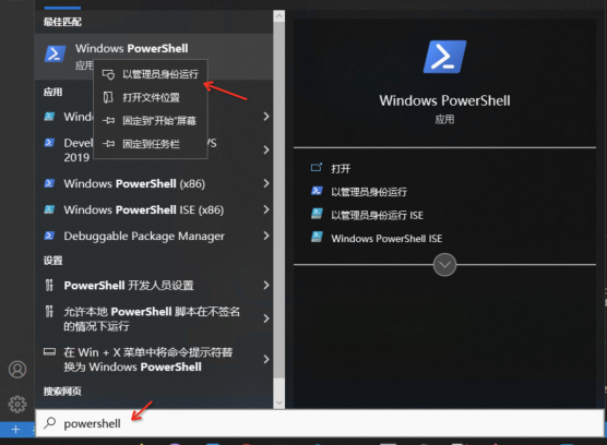 以管理员身份运行 PowerShell,如下