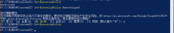 在 PowerShell 终端输入如下命令开启权限