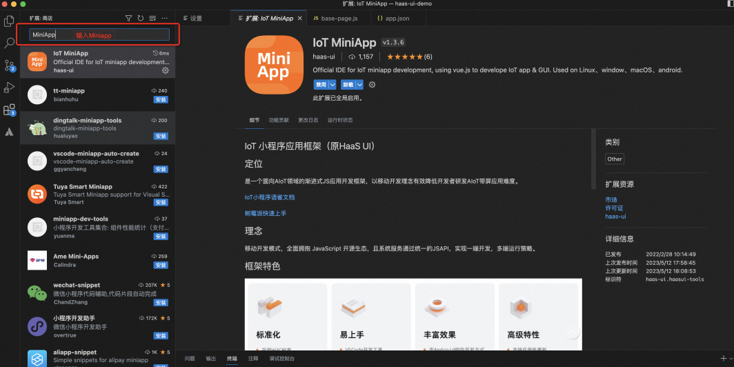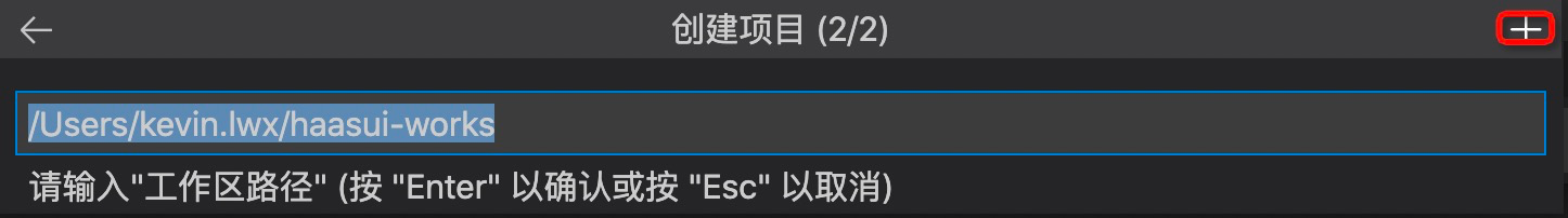 ●插件设置中Workspace Path 用于配置框架工程的创建路径,配置后用户创建的应用工程,默认会放到 Workspace Pat 中。若不配置,会将创建的工程放到~/haasui-works 路径下